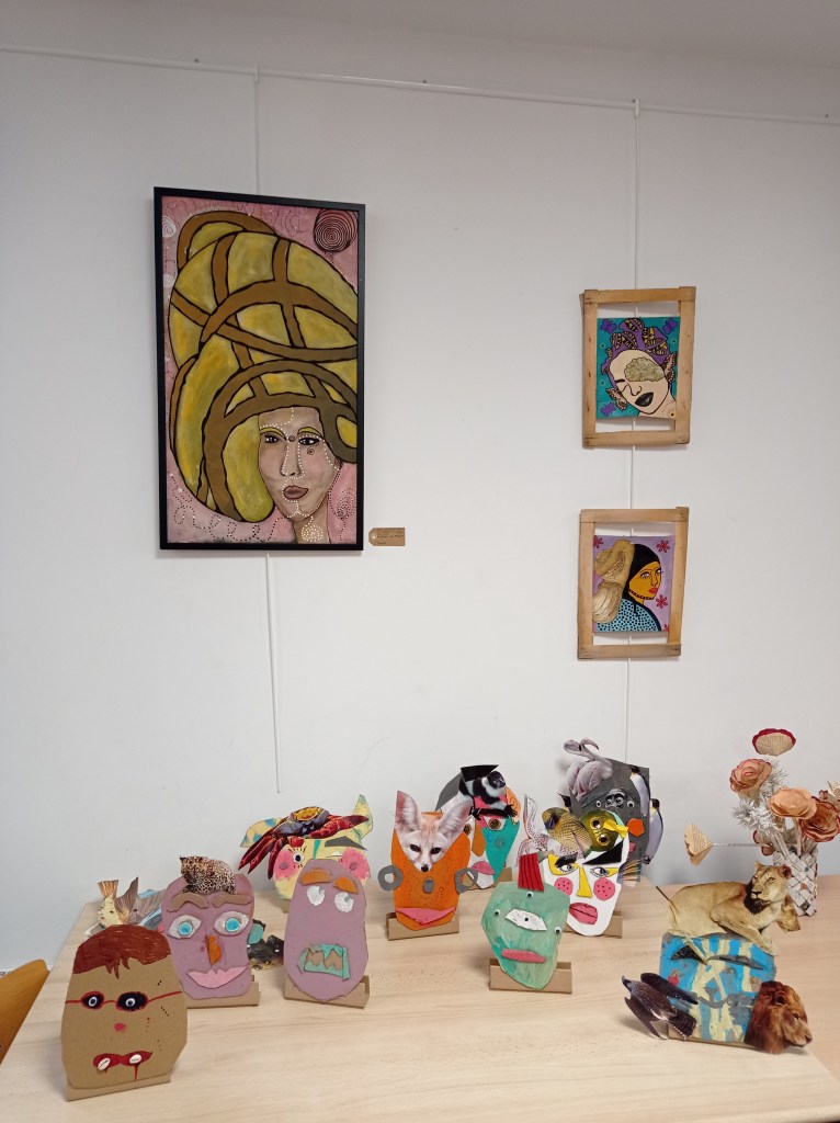 Je vous invite à plonger dans mon univers artistique par le biais d’un atelier mêlant arts-plastiques, écriture. J’accompagne chaque participant à réaliser un visage imaginaire avec du carton, des matériaux de recyclage, de la peinture et du collage. L’écriture vient ensuite afin de créer une carte d’identité imaginaire pour chacune des créatures. Atelier intergénérationnel.
