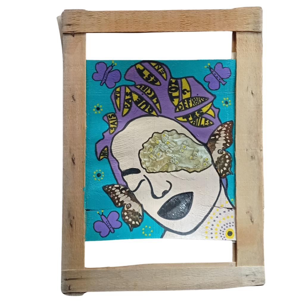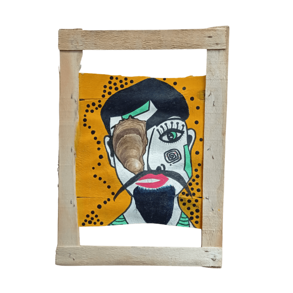 Couvercle de bourriche peint, acrylique collage, 21×29,7cm
