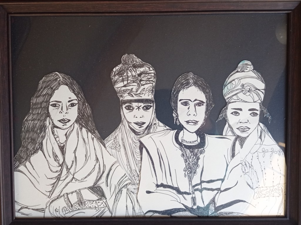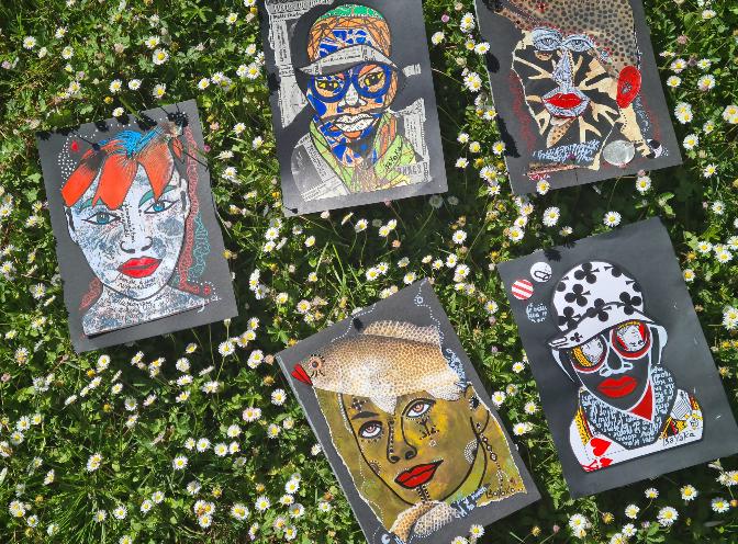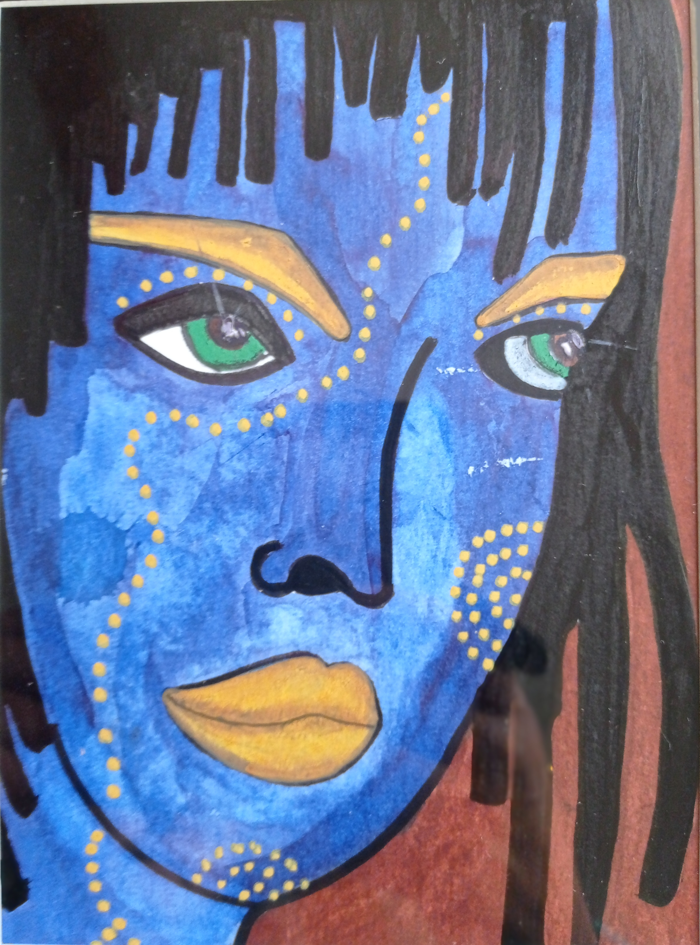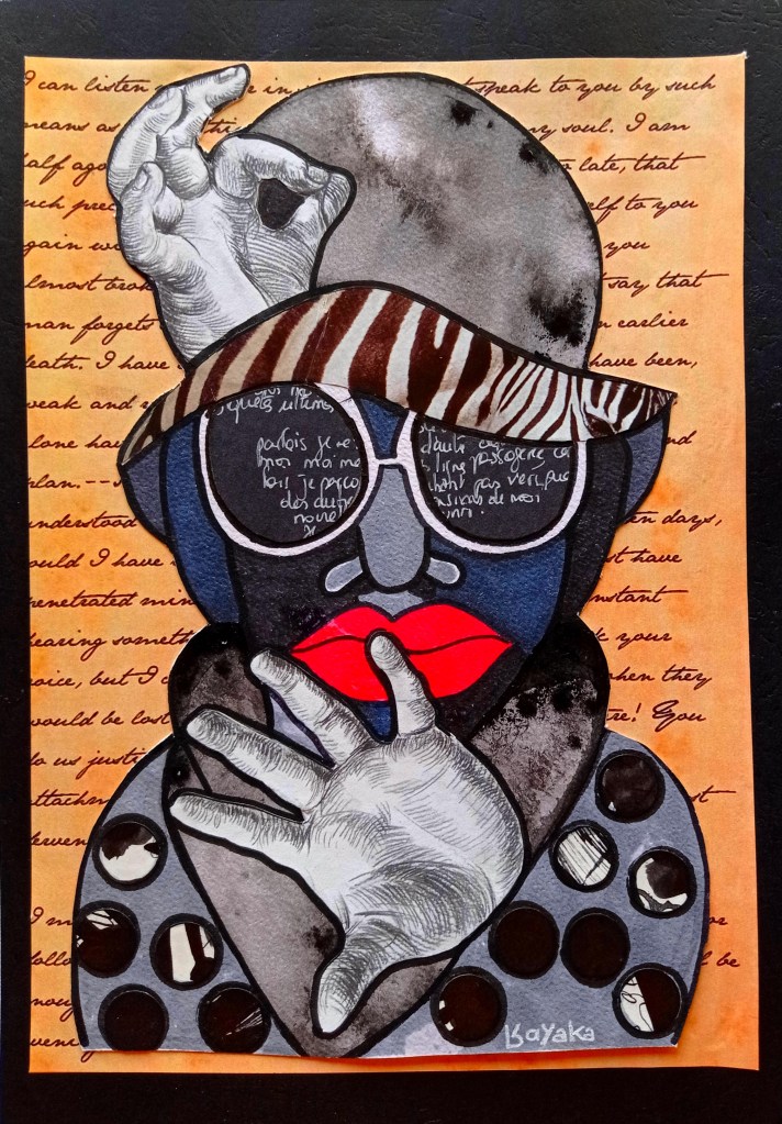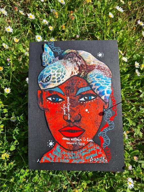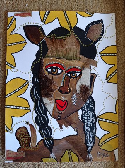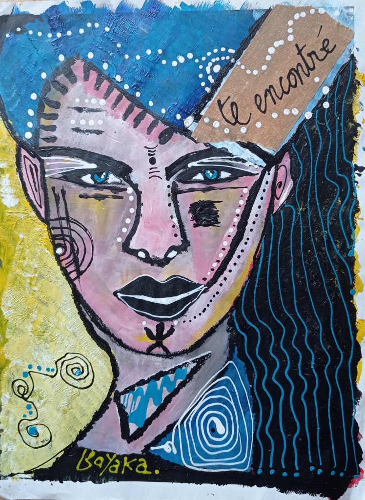 Avatar, 21×29,7cm, encre sur papier, encadréLes Bnet* (*les filles), 30x40cm, feutre noir sur papierMaori Amor, 21×29,7cm, collage et acrylique sur papier