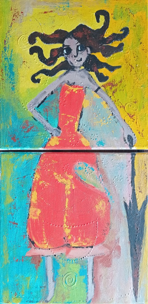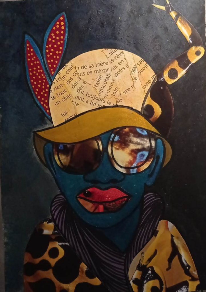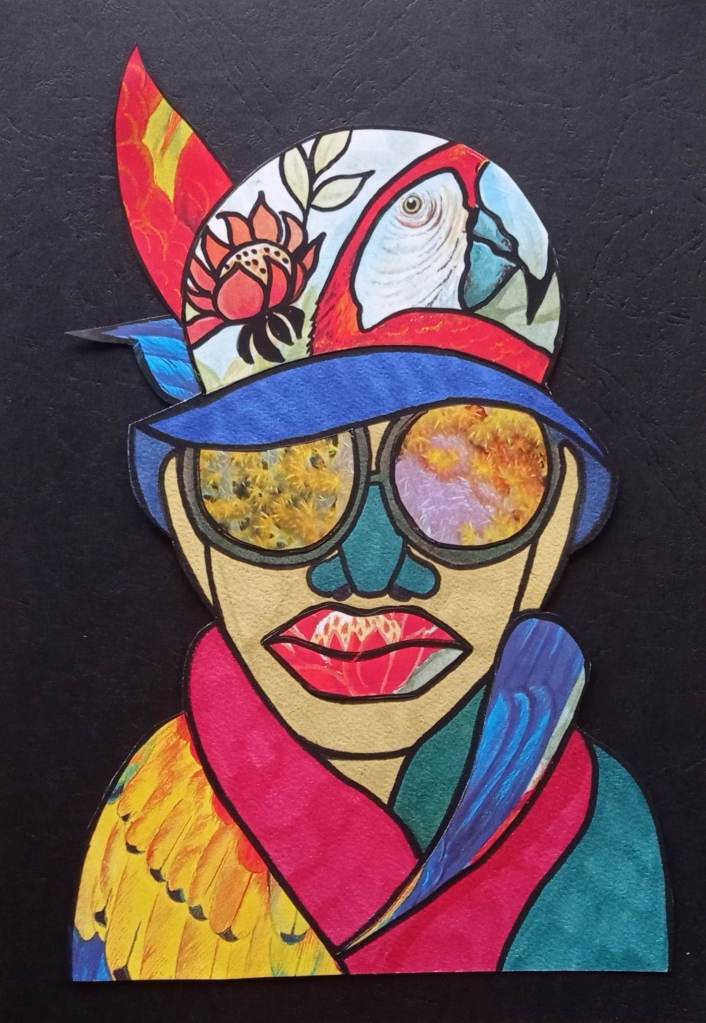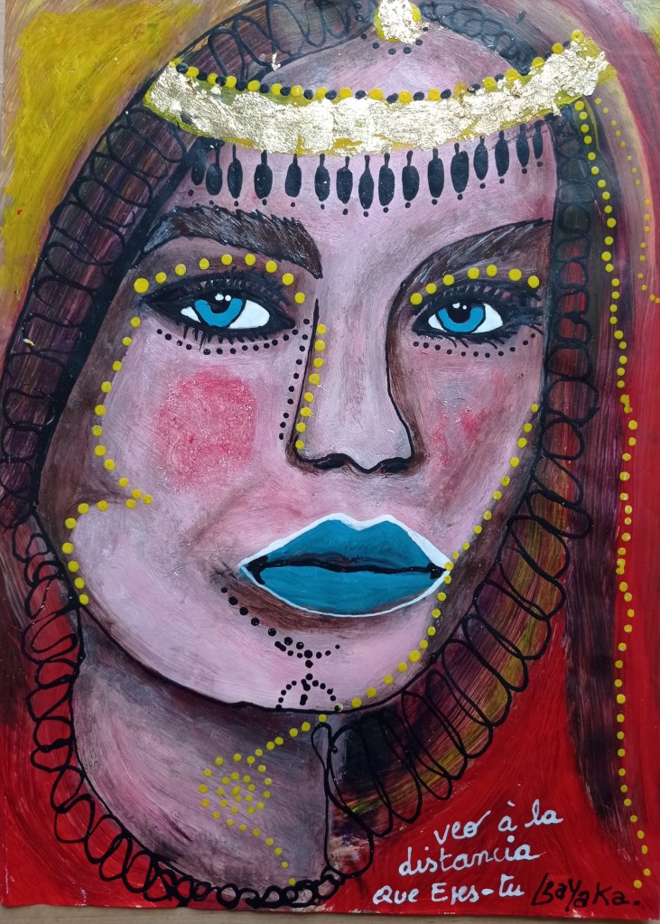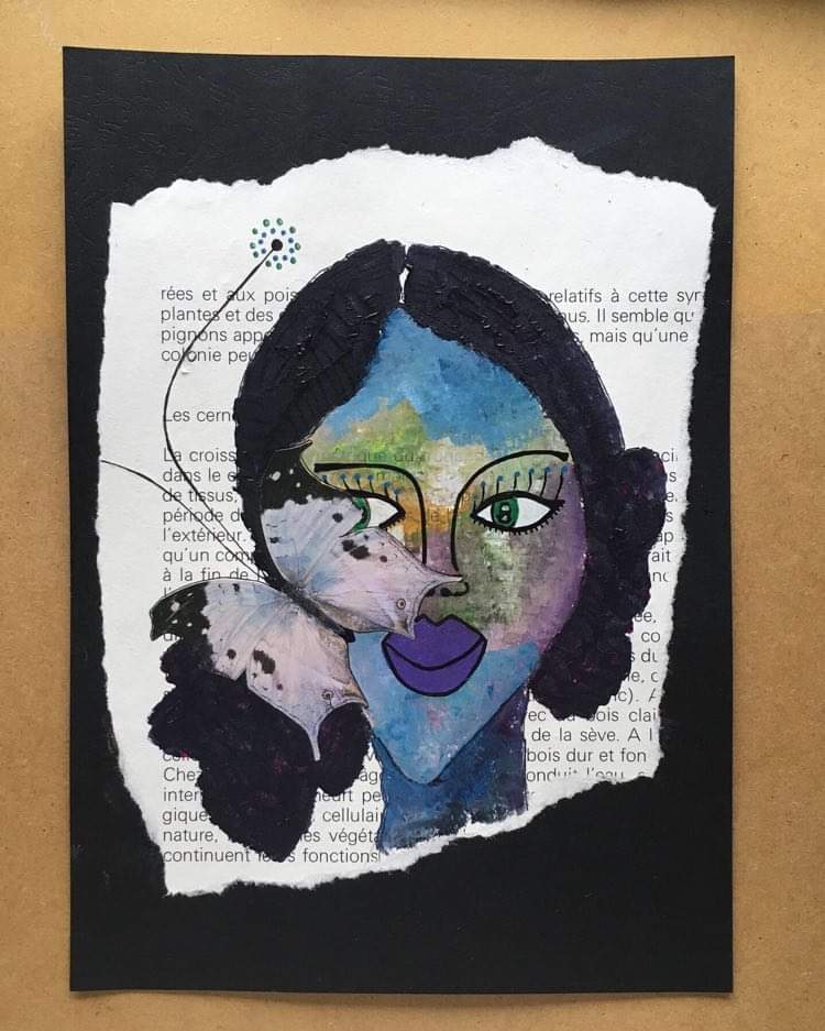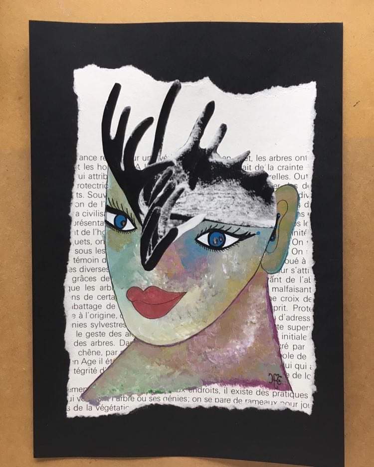 Buscame en tu mirada, la mia se aleja con el tiempo, 24x32cm, peinture sur revue support plateau bois Veo a la distancia, que eres tu, 21×29,7cm peinture sur revue